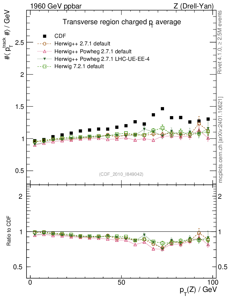 Plot of avgpt-vs-pt-trns in 1960 GeV ppbar collisions