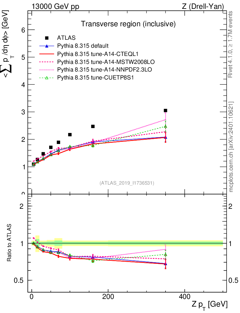 Z (Drell-Yan) : Underlying event : Σ(pT) vs p
