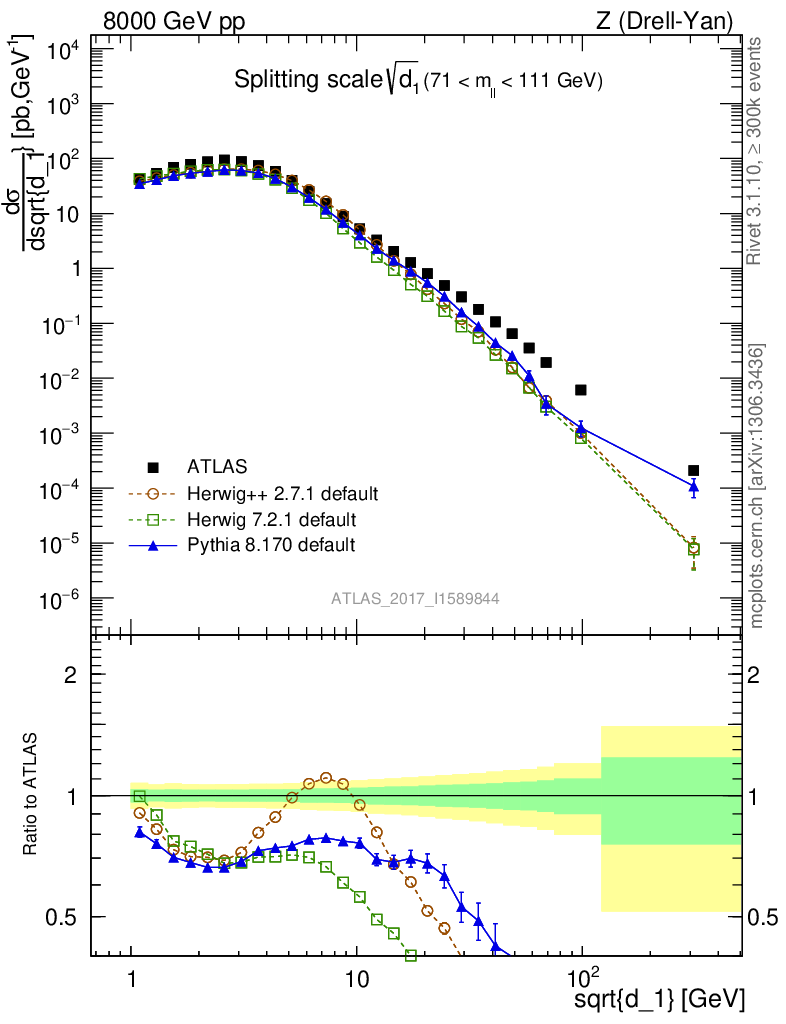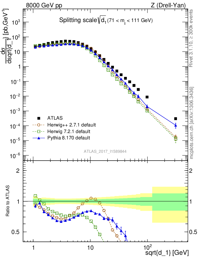 Z (Drell-Yan) : Jet Substructure : Splitting scale d1
