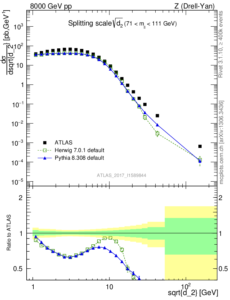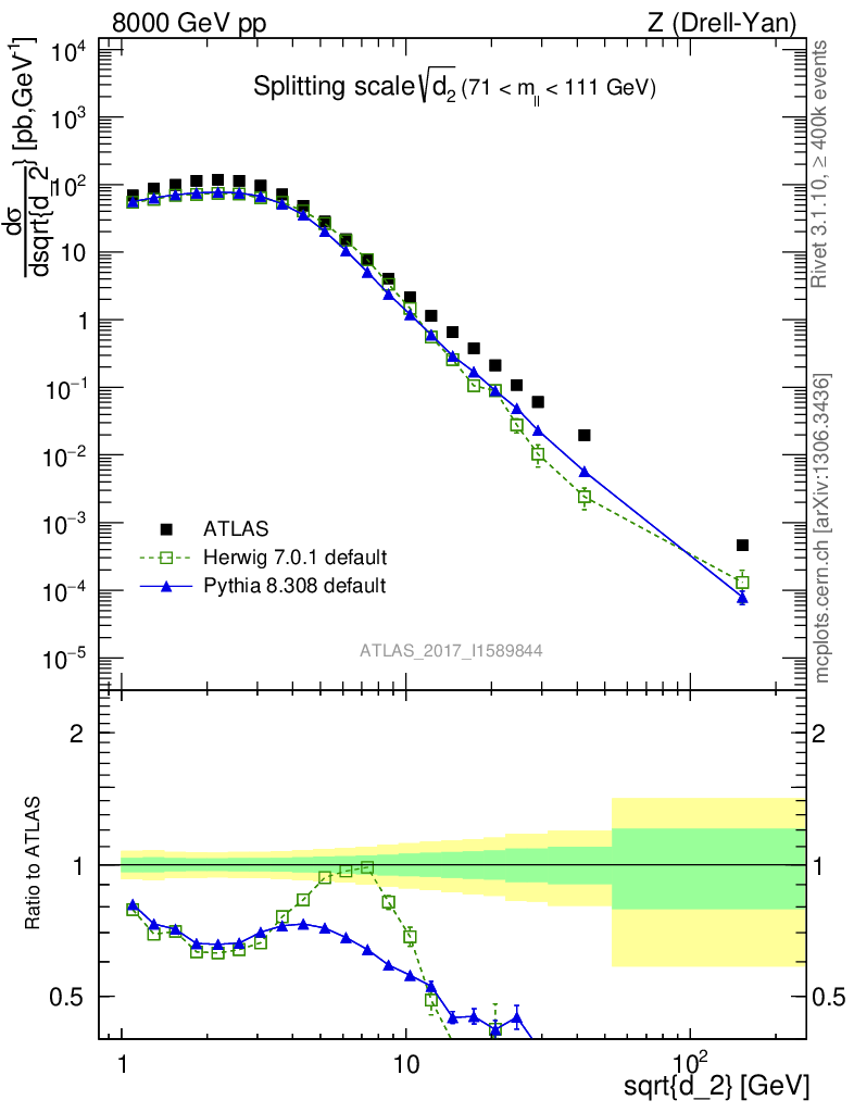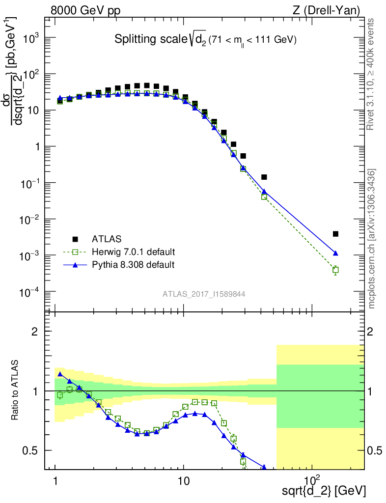 Z (Drell-Yan) : Jet Substructure : Splitting scale d2