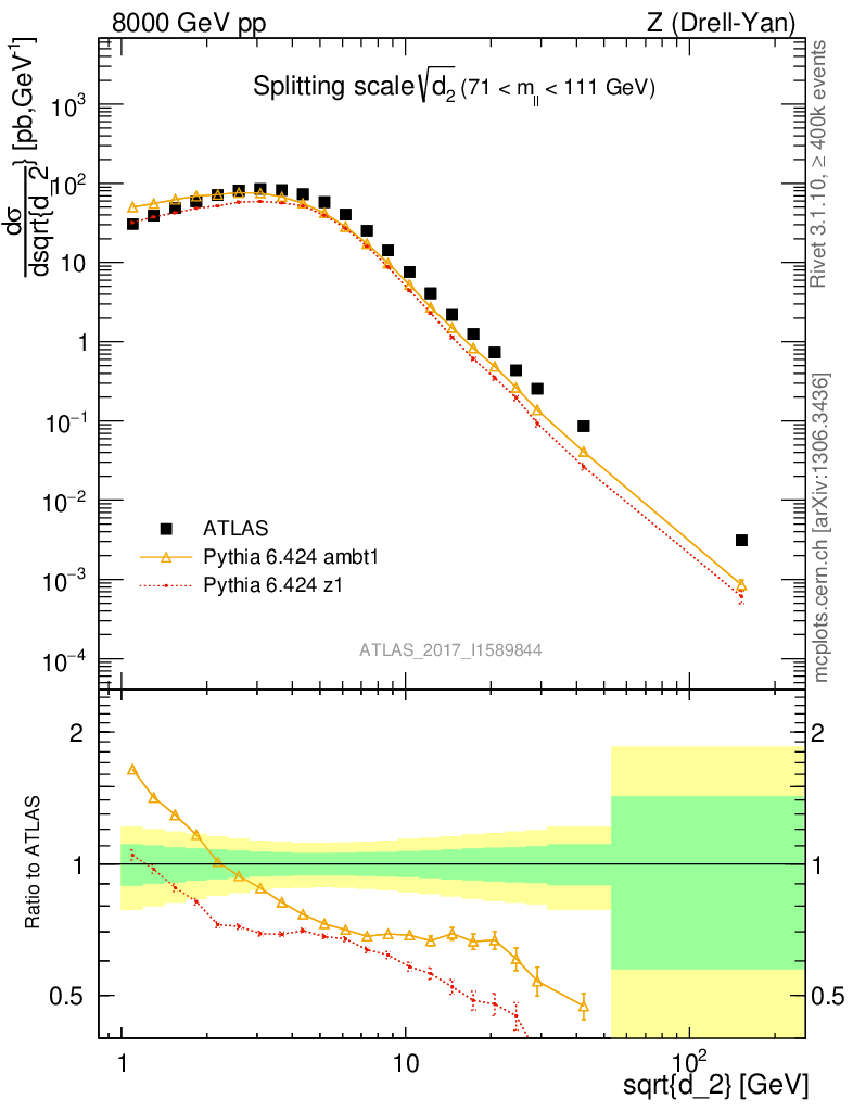 Z (Drell-Yan) : Jet Substructure : Splitting scale d2