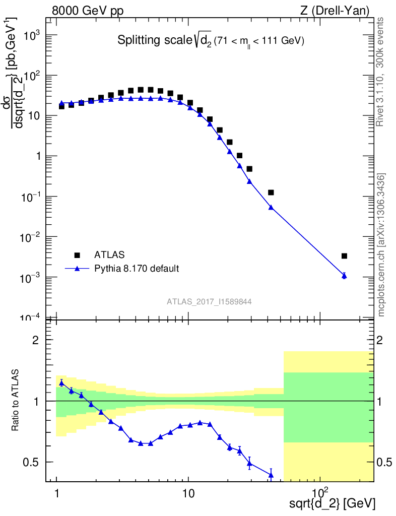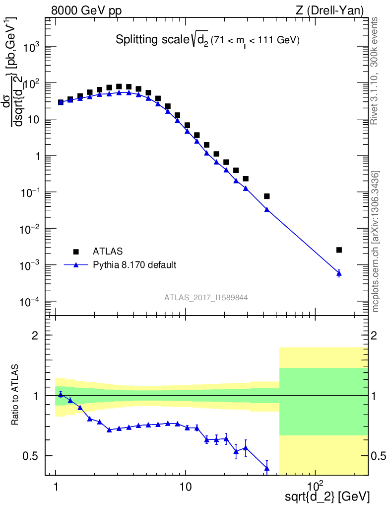 Z (Drell-Yan) : Jet Substructure : Splitting scale d2