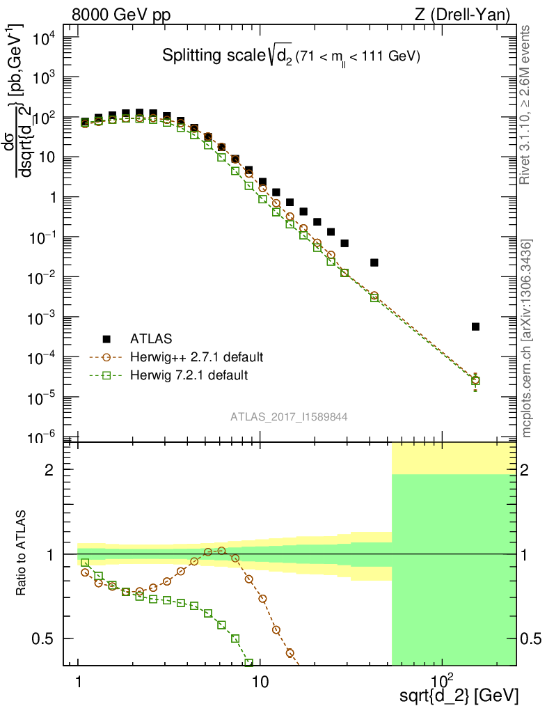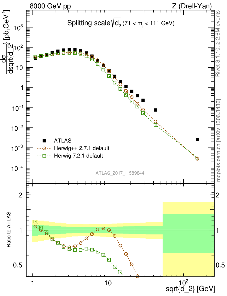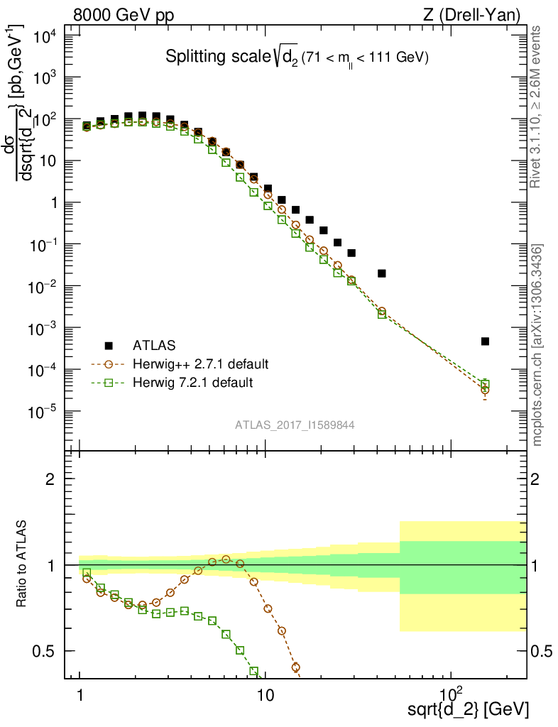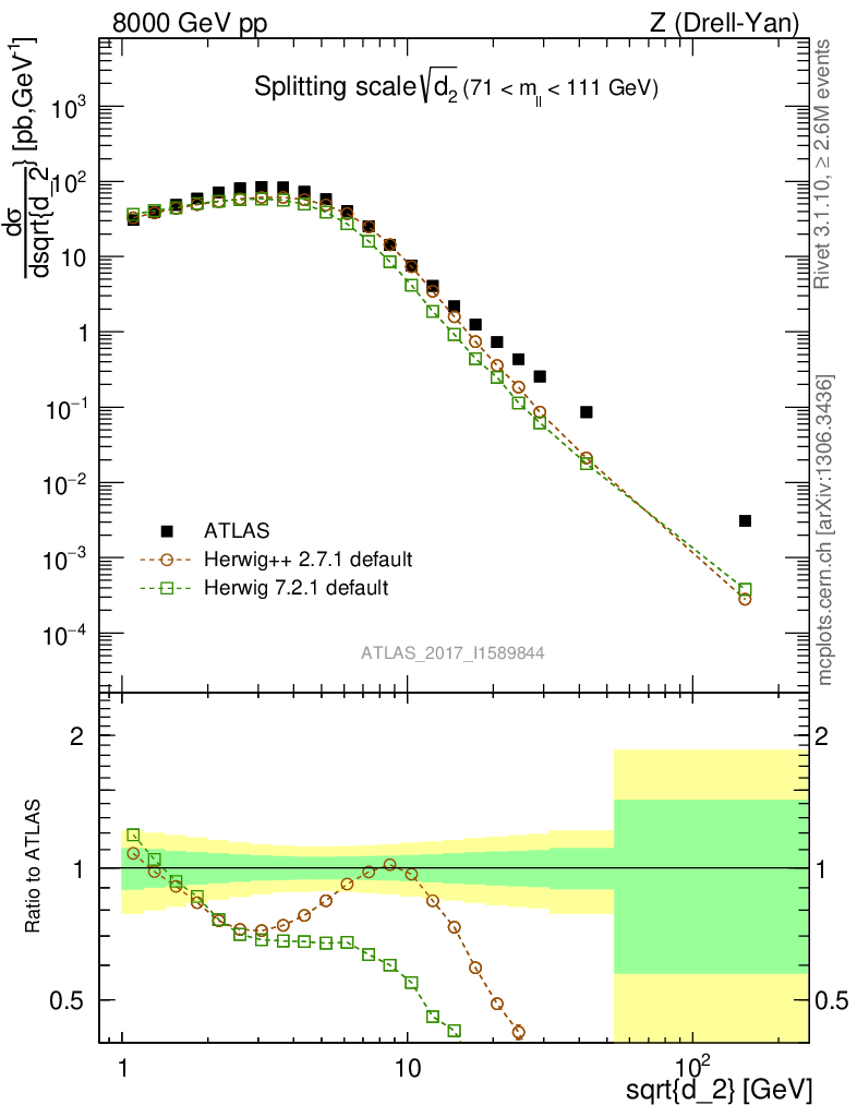 Z (Drell-Yan) : Jet Substructure : Splitting scale d2