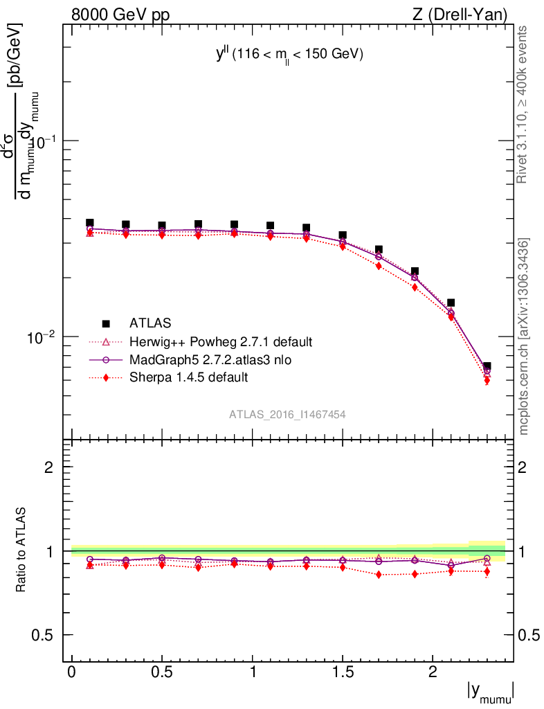 Plot of ll.y in 13000 GeV pp collisions