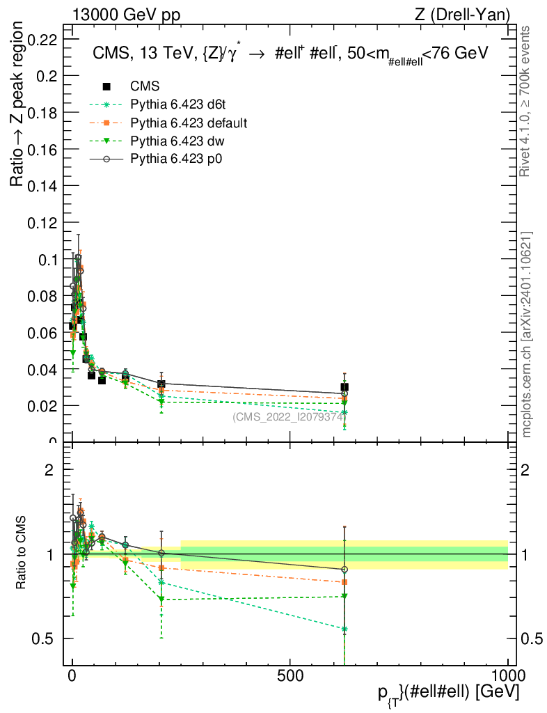 Choose generators/versions/tunes to plot : either from a pre-defined preset (left button) or from all available MCs (right button)