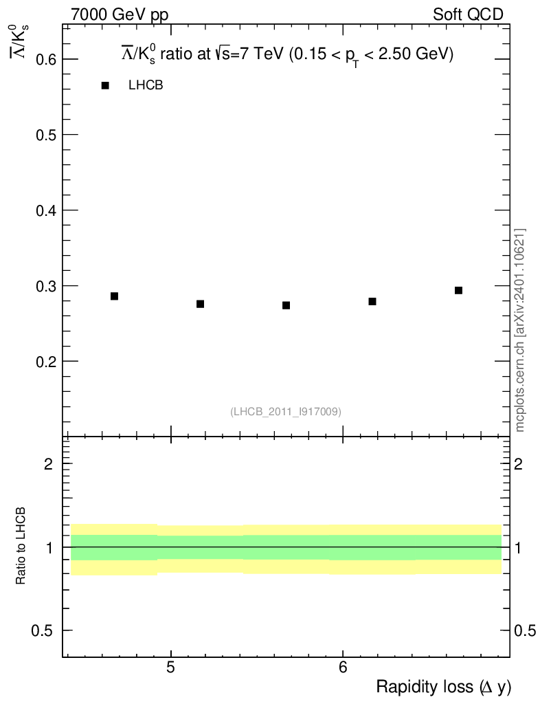Soft QCD (inelastic) : Identified Particles : Ratios : Λbar/K0S vs |Δy|