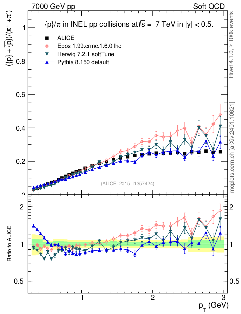 Soft QCD (inelastic) : Identified Particles : Ratios : (pbar+p)/(π-+π+) vs pT