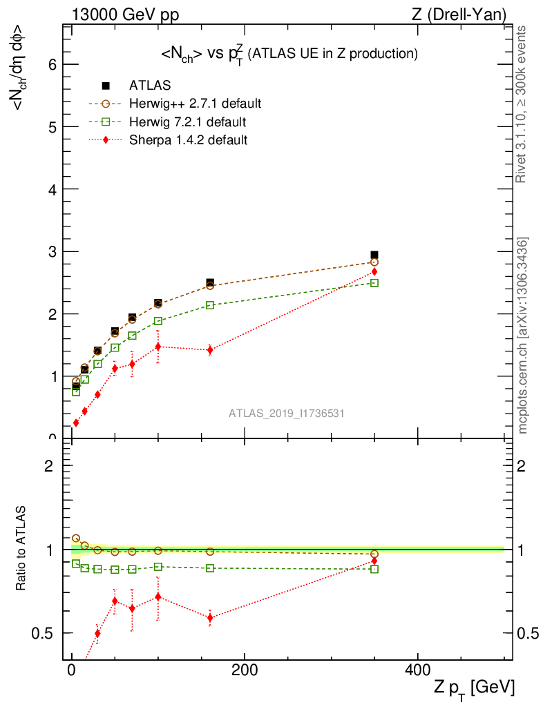Z (Drell-Yan) : Underlying event : <Nch> vs p