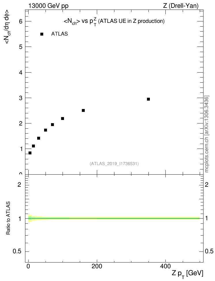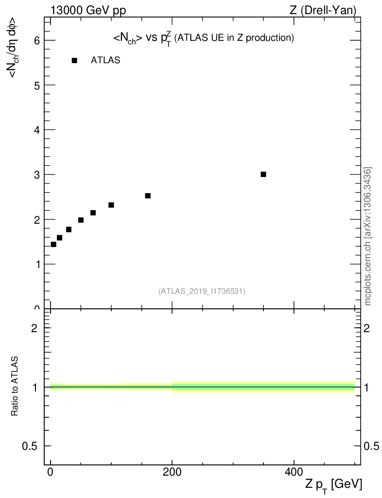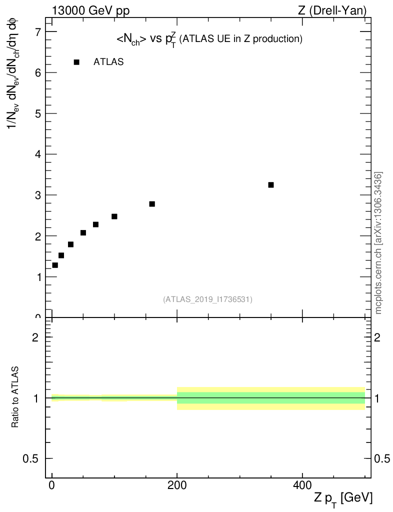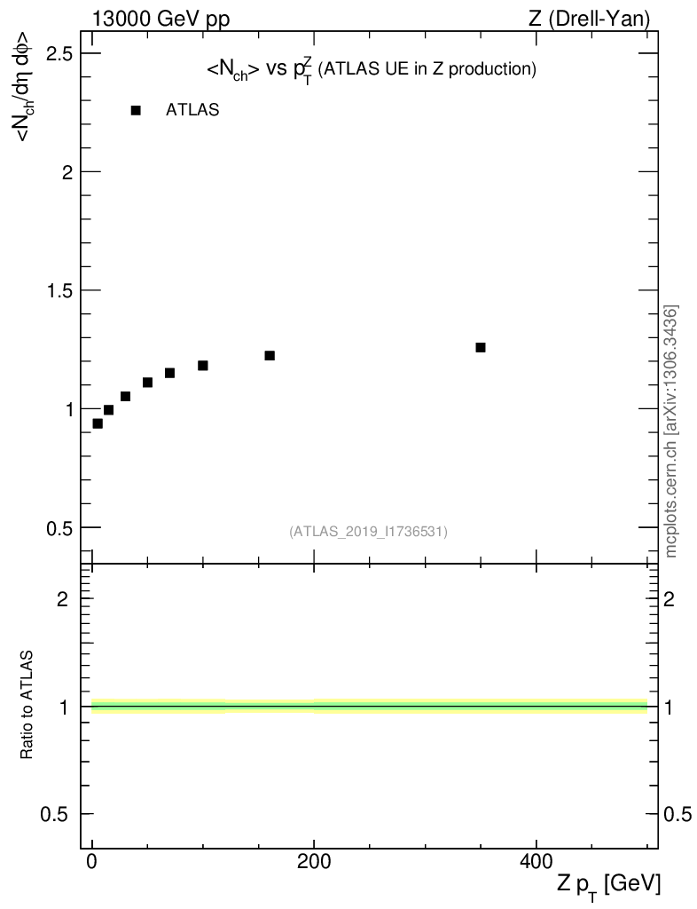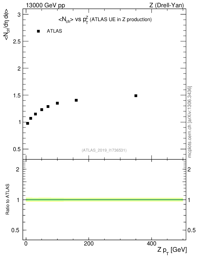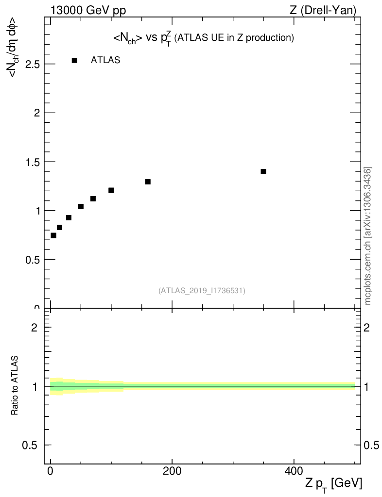 Z (Drell-Yan) : Underlying event : <Nch> vs p