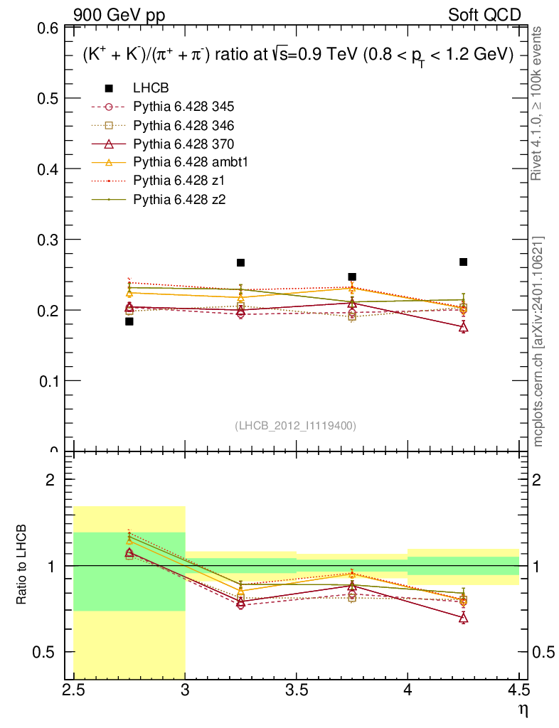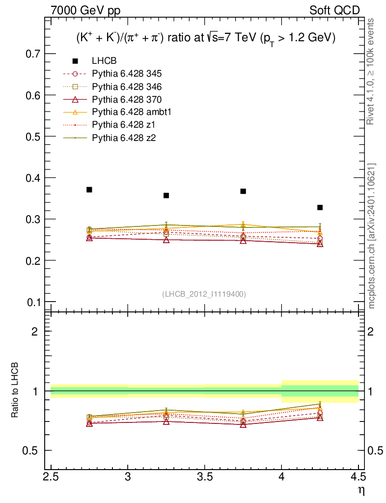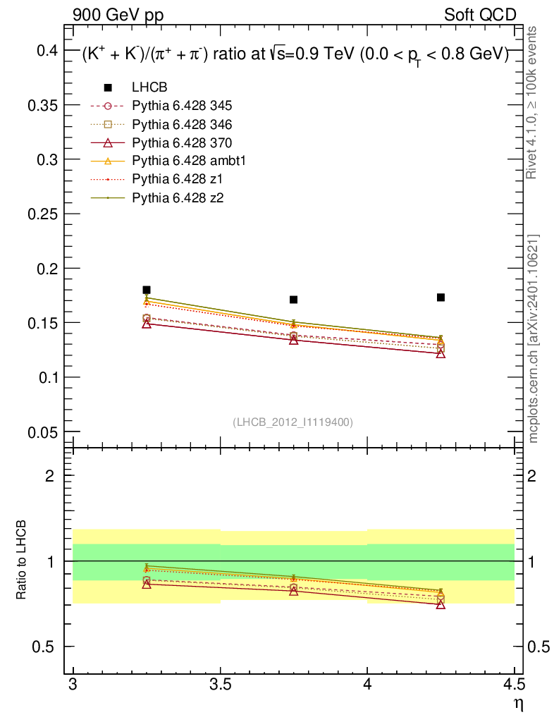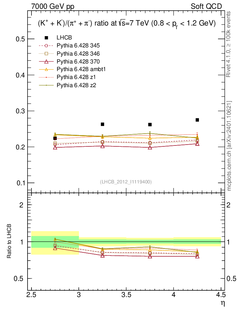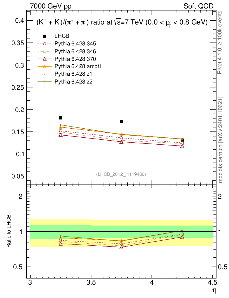 Soft QCD (inelastic) : Identified Particles : Ratios : (K-+K+)/(π-+π+) vs |y|