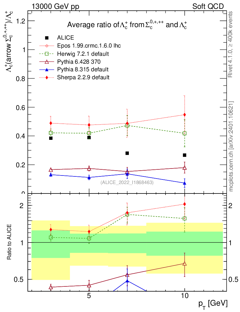 Soft QCD (inelastic) : Identified Particles : Ratios : Λc+ from Σc0,+,++/Λc+ vs pT