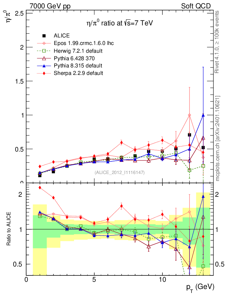 Soft QCD (inelastic) : Identified Particles : Ratios : η/π0 vs pT